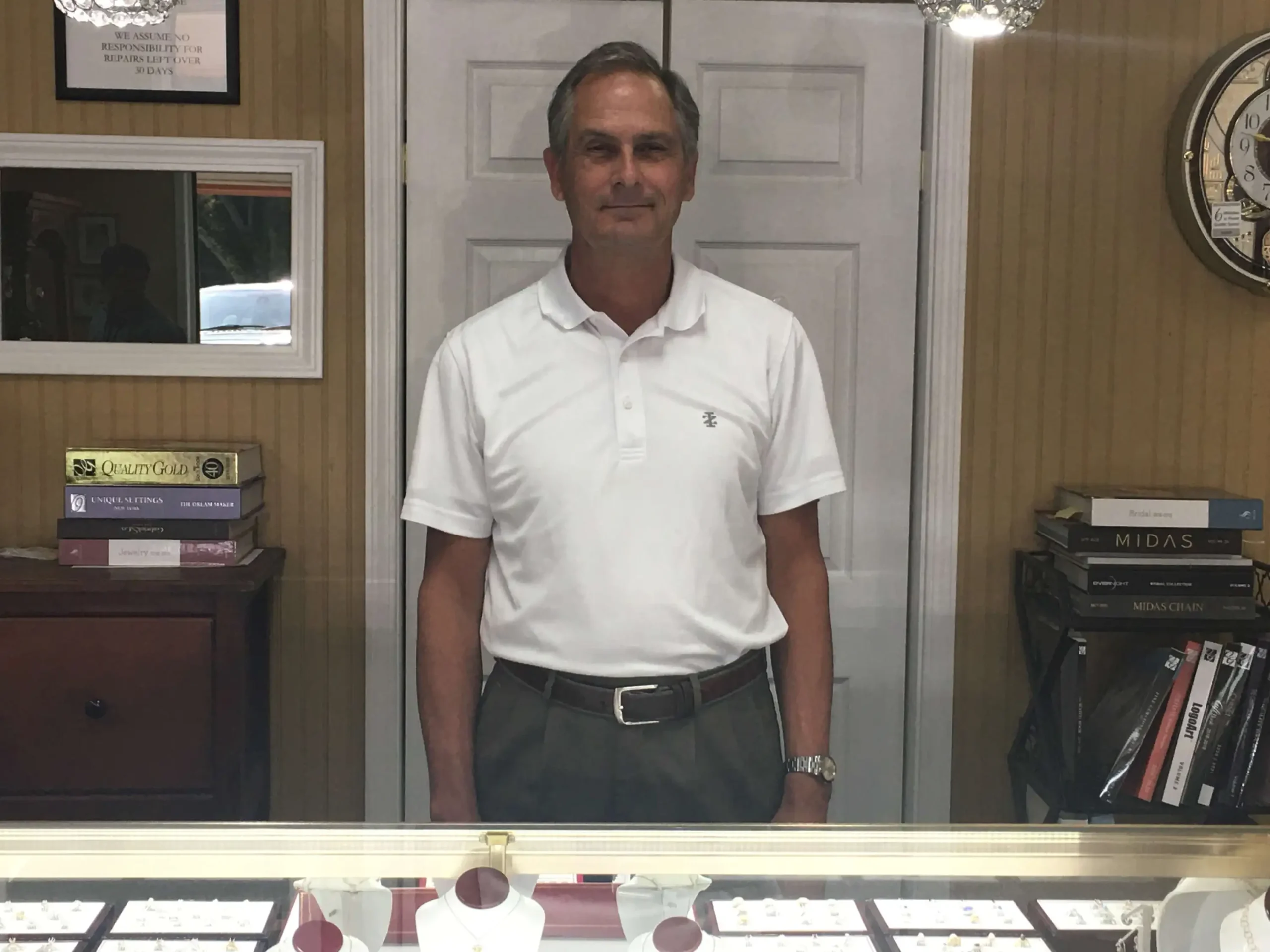 A: I’m at retirement age but I’ll continue to work as long as my health is good. I might cut back some hours; but I still enjoy this. I do. I enjoy doing the repairs, putting jewelry together, making a few things, and getting to know the new people now. The people that I knew in the 80’s and the 90’s have passed on; so now it’s the new generation. When new people come in, and if they have an accent, I ask them, “Where are you from?” Then they will answer me. Then I ask, “Well, what brought you here?” All have different stories, and I’ve just found that intriguing.